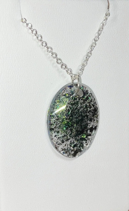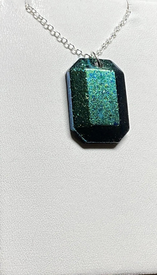 Color-Shift Octagon Necklace - Pink and Iridescent Blue