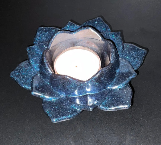 Shimmery Blue Lotus Flower Tealight Candle Holder