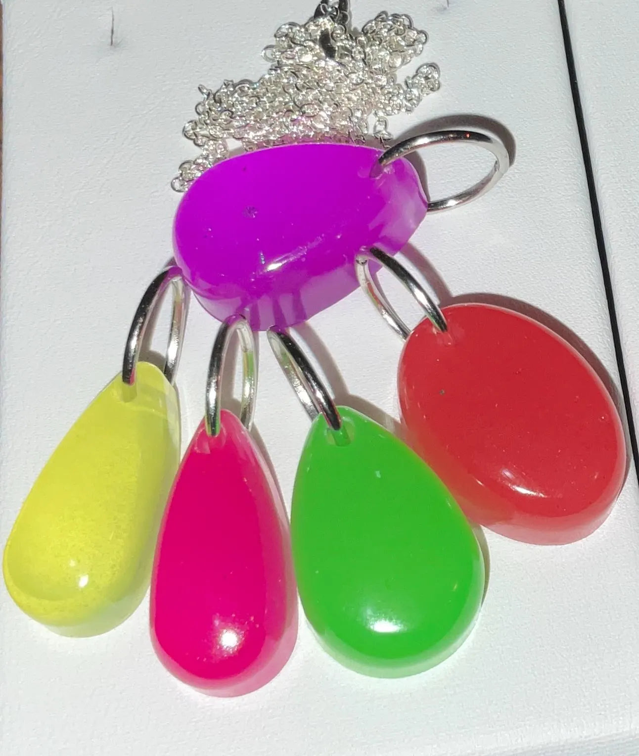 Add a touch of magic to your accessory collection with this enchanting set of five glow-in-the-dark pendants, each with its own unique color, shape, and personality.