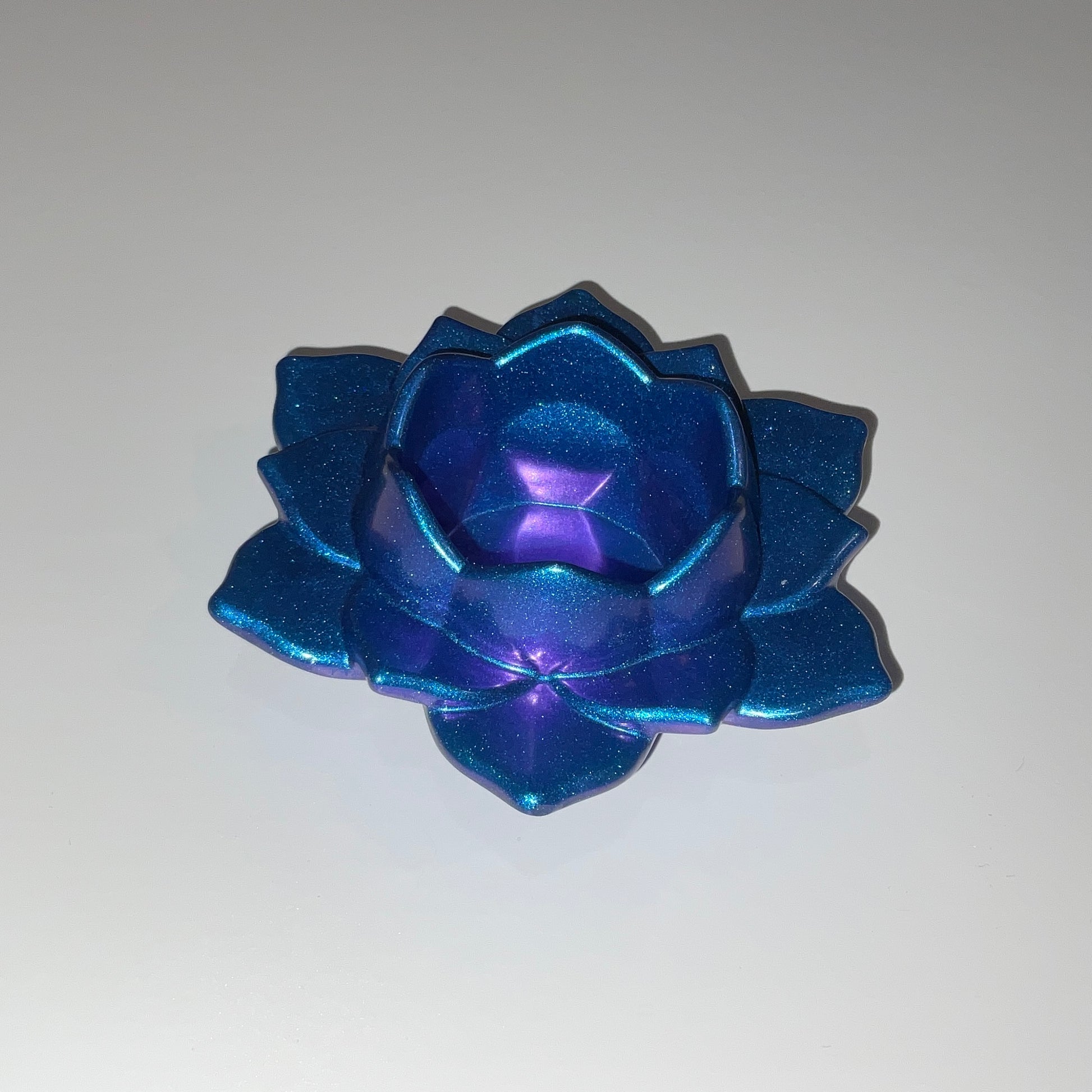 Transform any room into a serene oasis with this mesmerizing Color Shift Lotus Flower Tealight Candle Holder. Designed to captivate, the holder’s surface shimmers and shifts between stunning shades of blue and purple, depending on the light and viewing angle. Inspired by the timeless elegance of the lotus flower, each delicate petal-like detail glows softly, creating a peaceful, radiant ambiance when illuminated by candlelight.