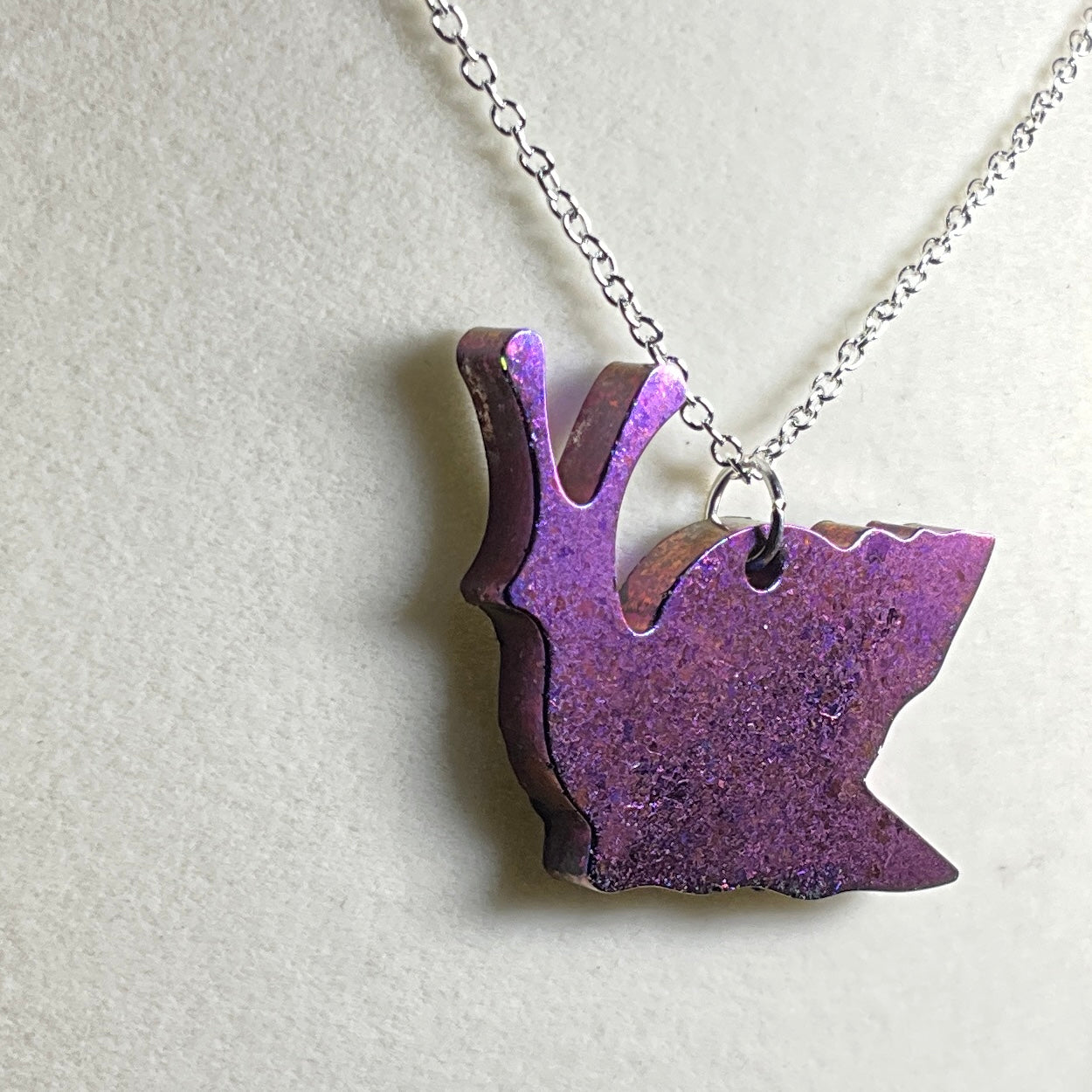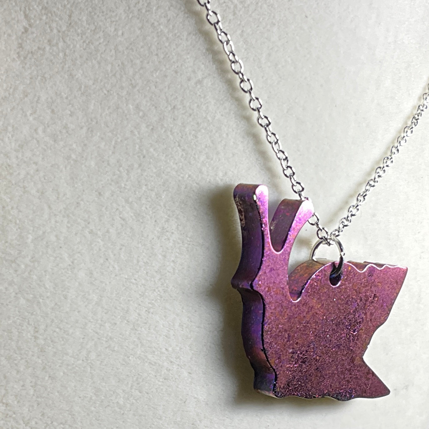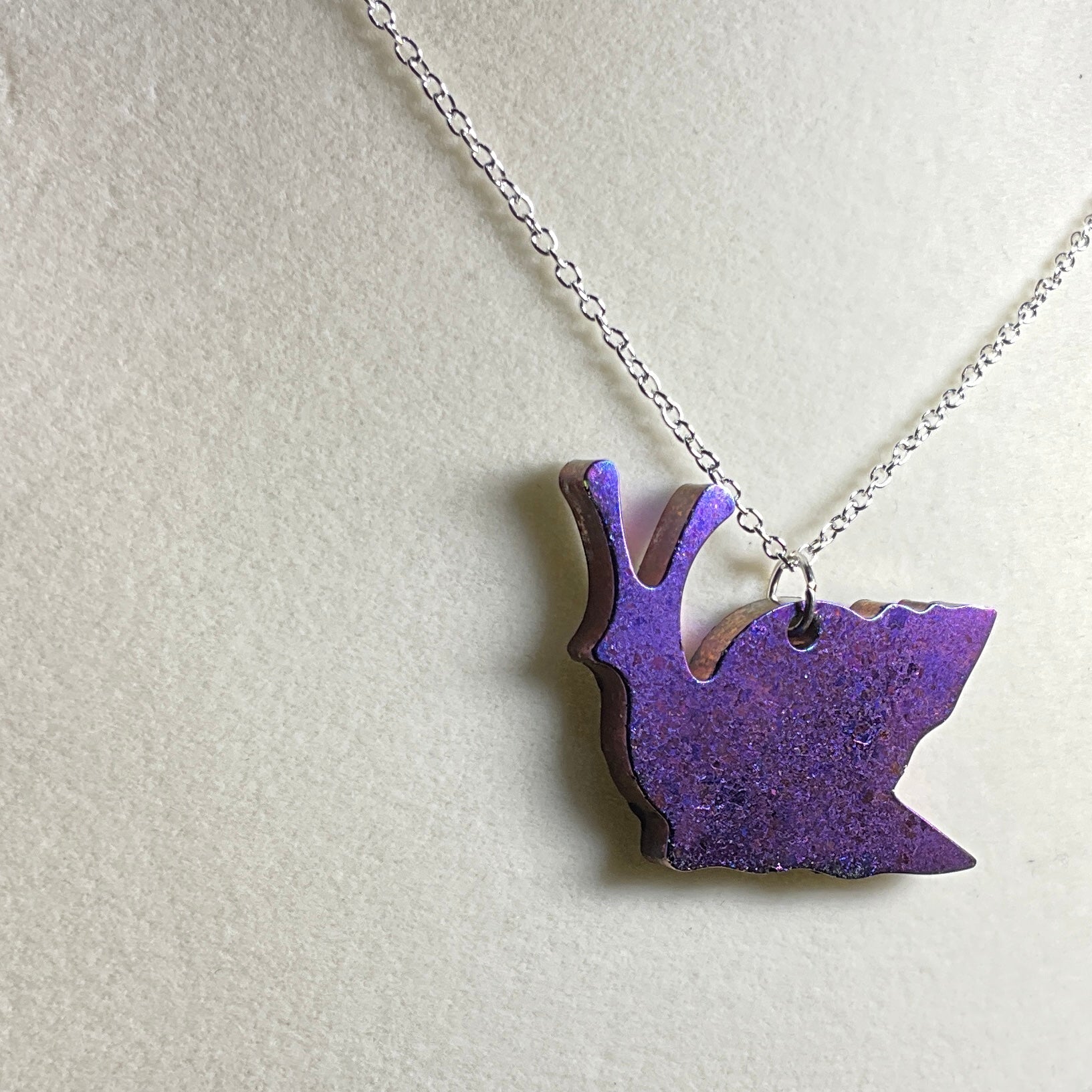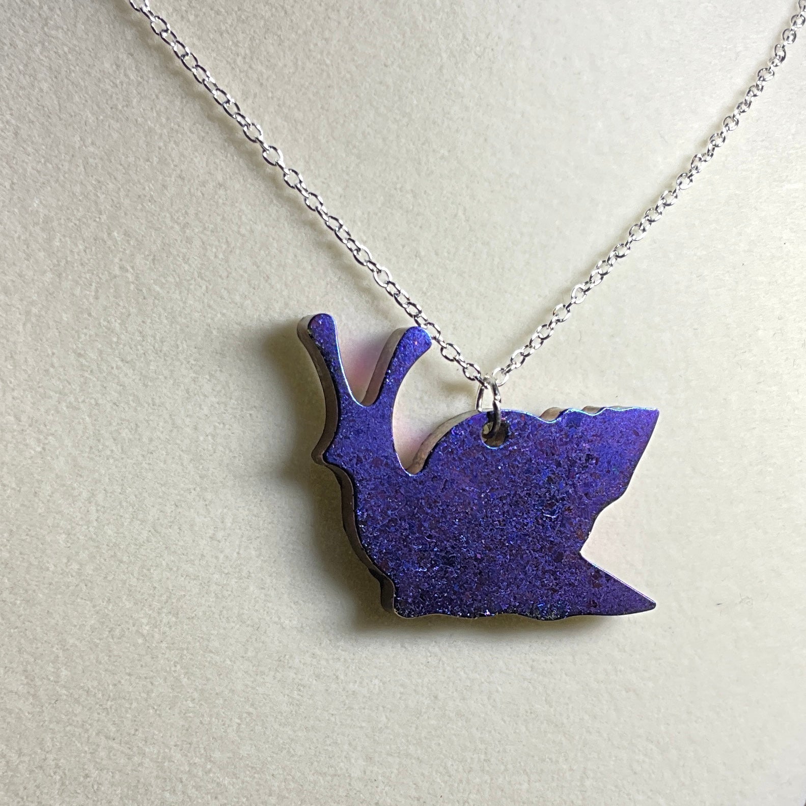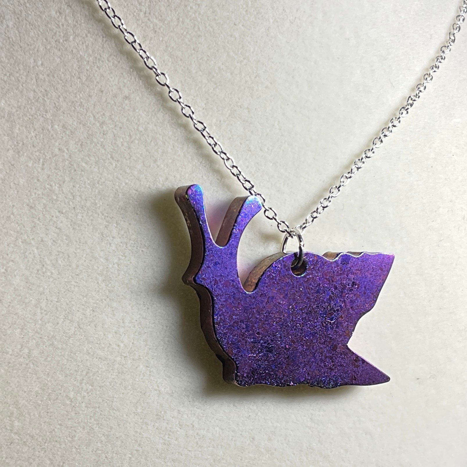Watch as the pendant transforms between vibrant hues of blue, purple, and pink, offering a captivating display that shifts with light and movement, much like the way change unfolds in our lives.
