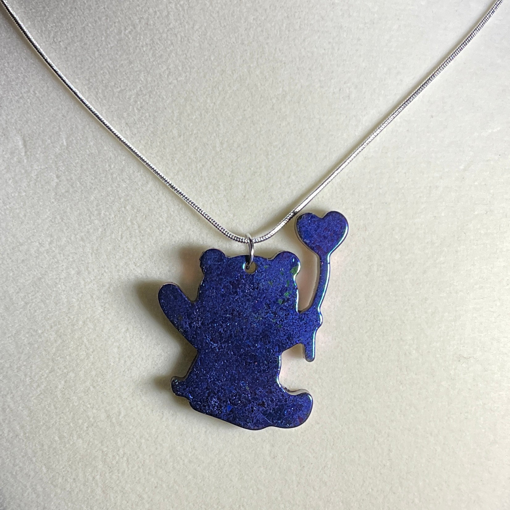 Celebrate love and tenderness with this adorable teddy bear necklace, featuring a charming teddy bear holding a heart-shaped balloon. The pendant captures the playful and loving spirit of the bear, symbolizing care, warmth, and affection. Perfect for anyone who treasures sentimental gifts, this sweet design adds a whimsical and heartfelt touch to any jewelry collection.