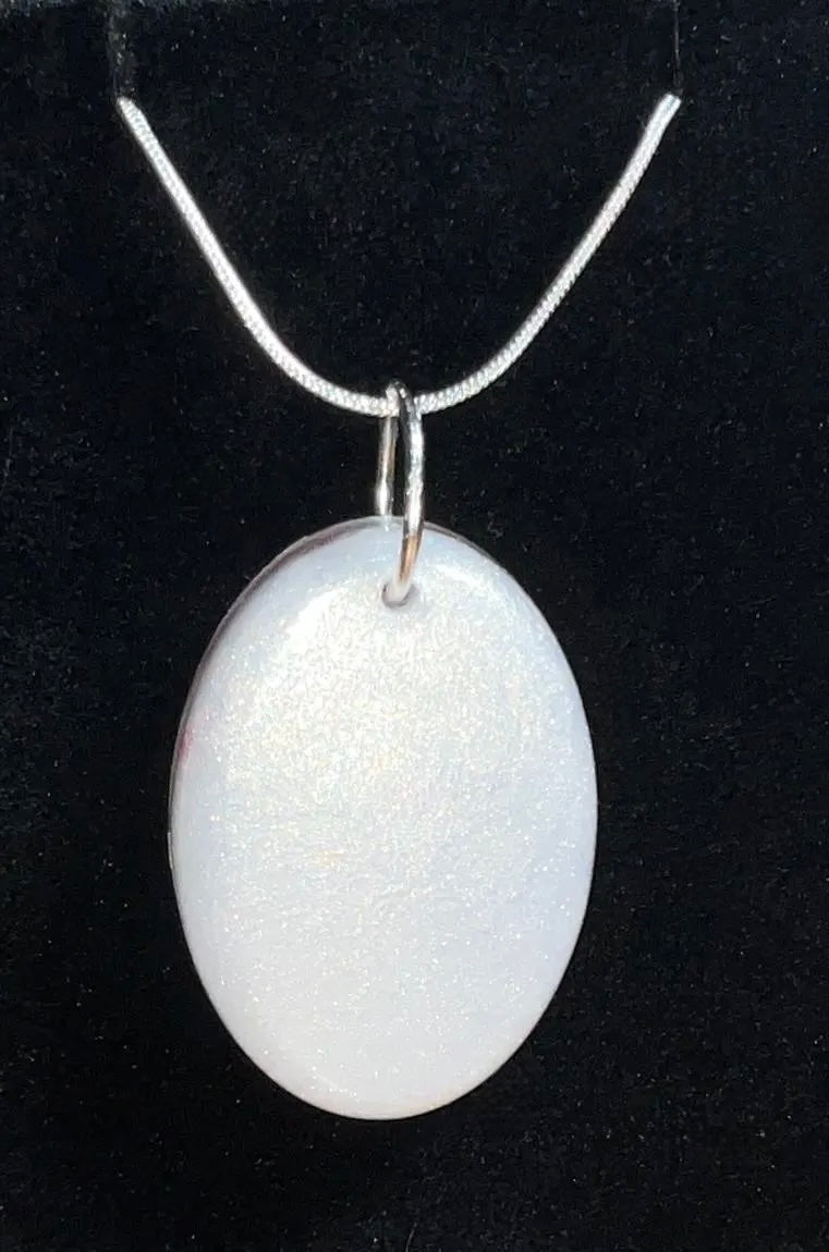 Carry the charm of nature with you wherever you go with this exquisite pressed flower resin pendant necklace. A delicate cluster of dark pink flowers is gracefully preserved against a shimmering white backdrop that adds an ethereal glow. This versatile piece offers two looks in one – wear it with the flowers displayed for a natural, organic feel, or flip it to showcase the soft, luminous shimmer, allowing you to effortlessly match your mood or outfit.