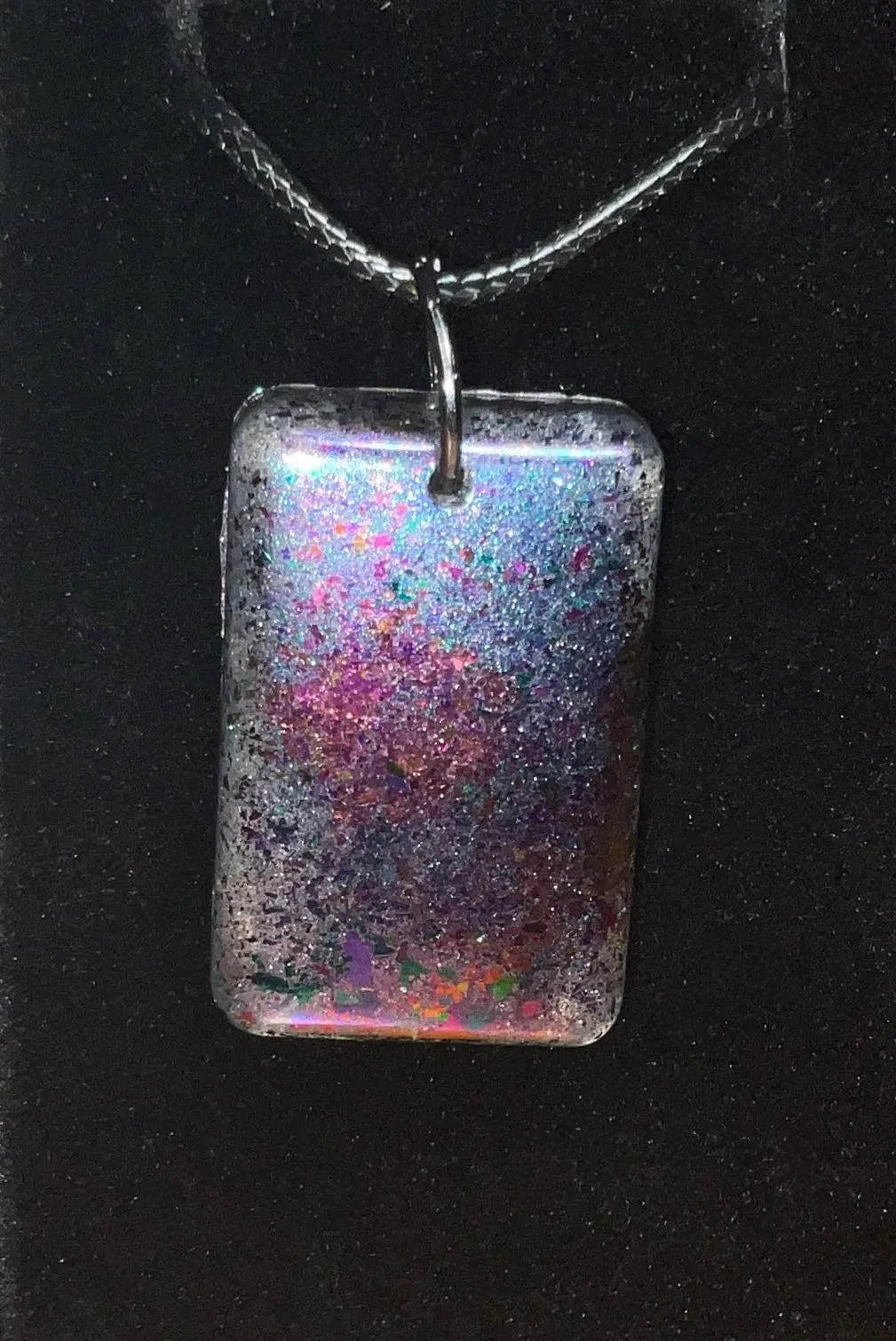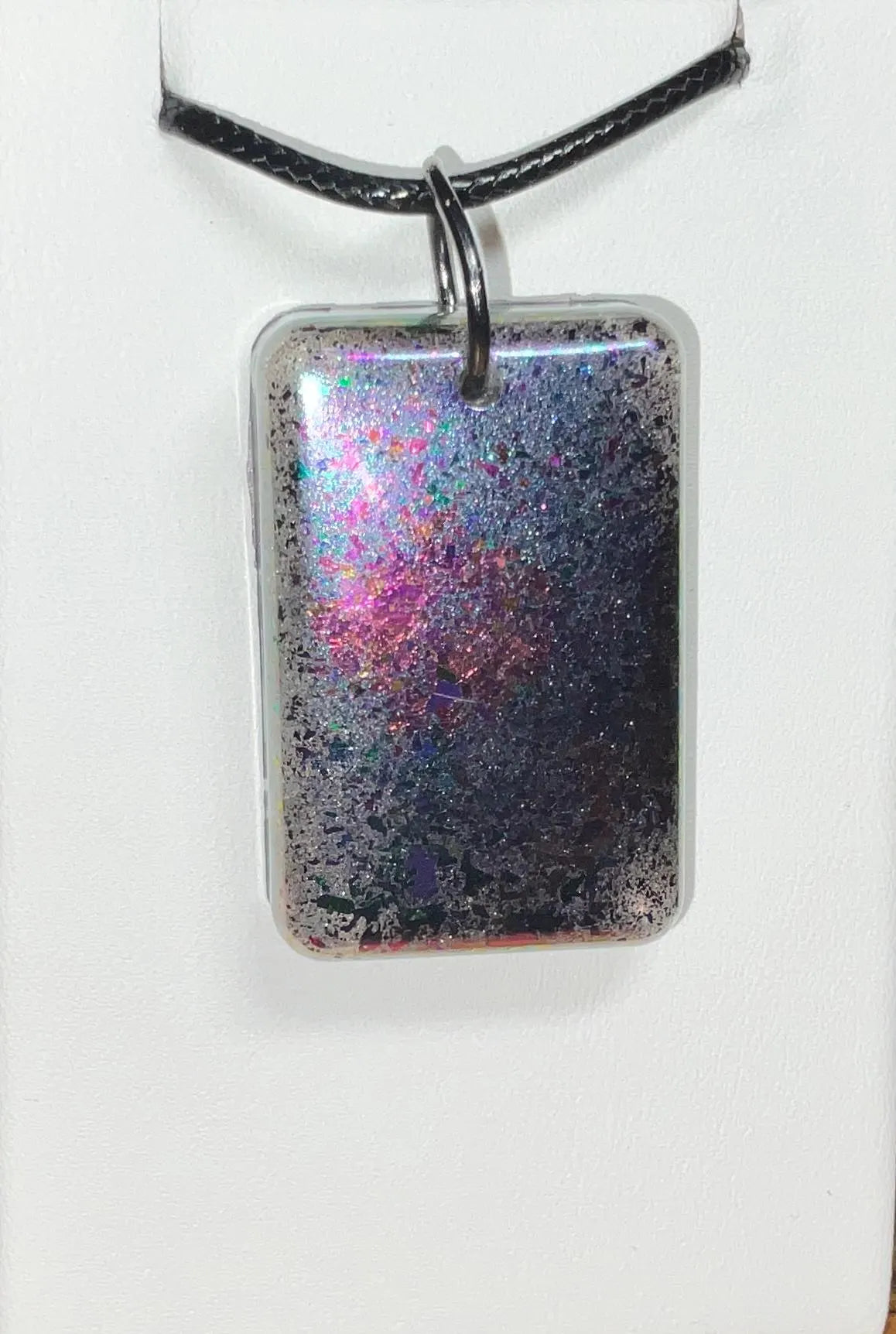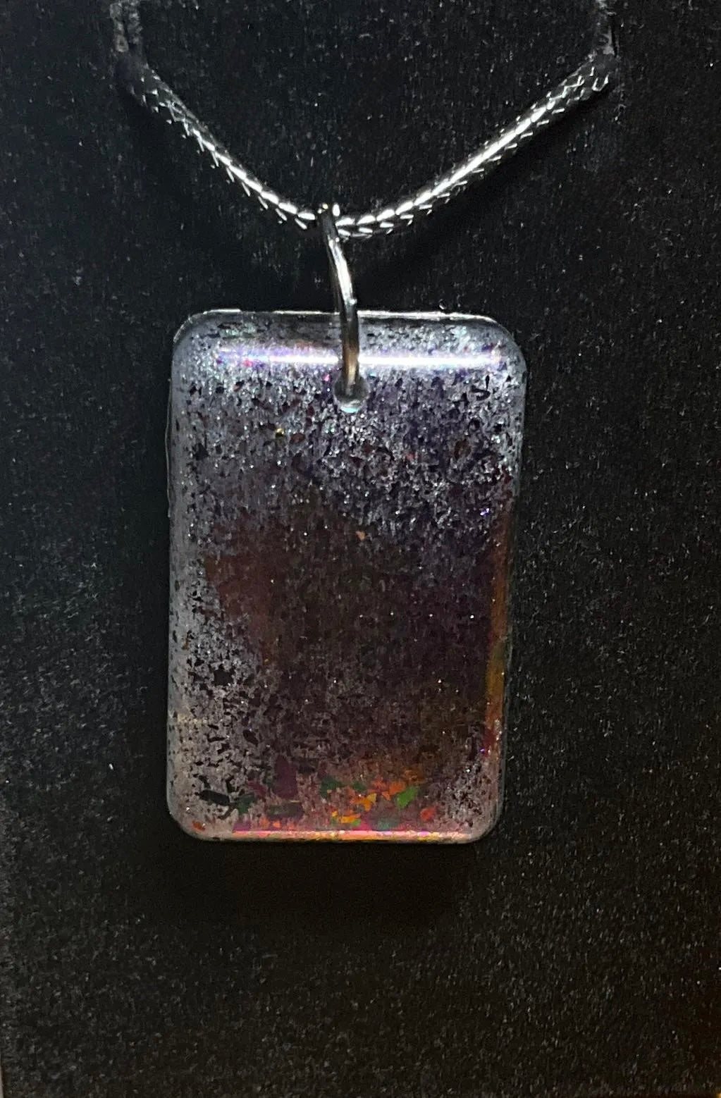 - Side 2: Flip the pendant over to reveal a mesmerizing, color-shifting metallic surface that gleams in different hues depending on the light and angle – a dynamic twist that brings your look to life.
