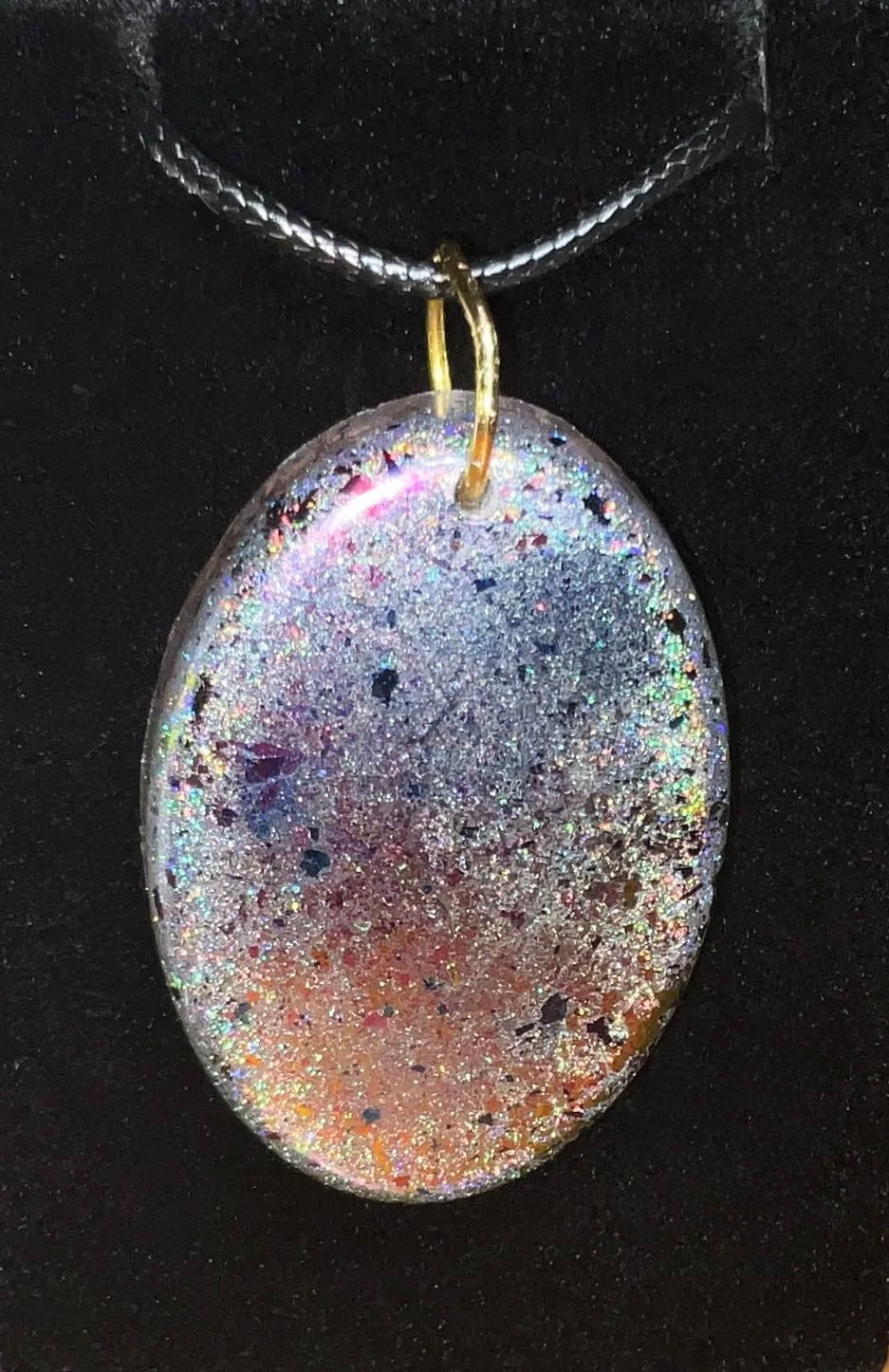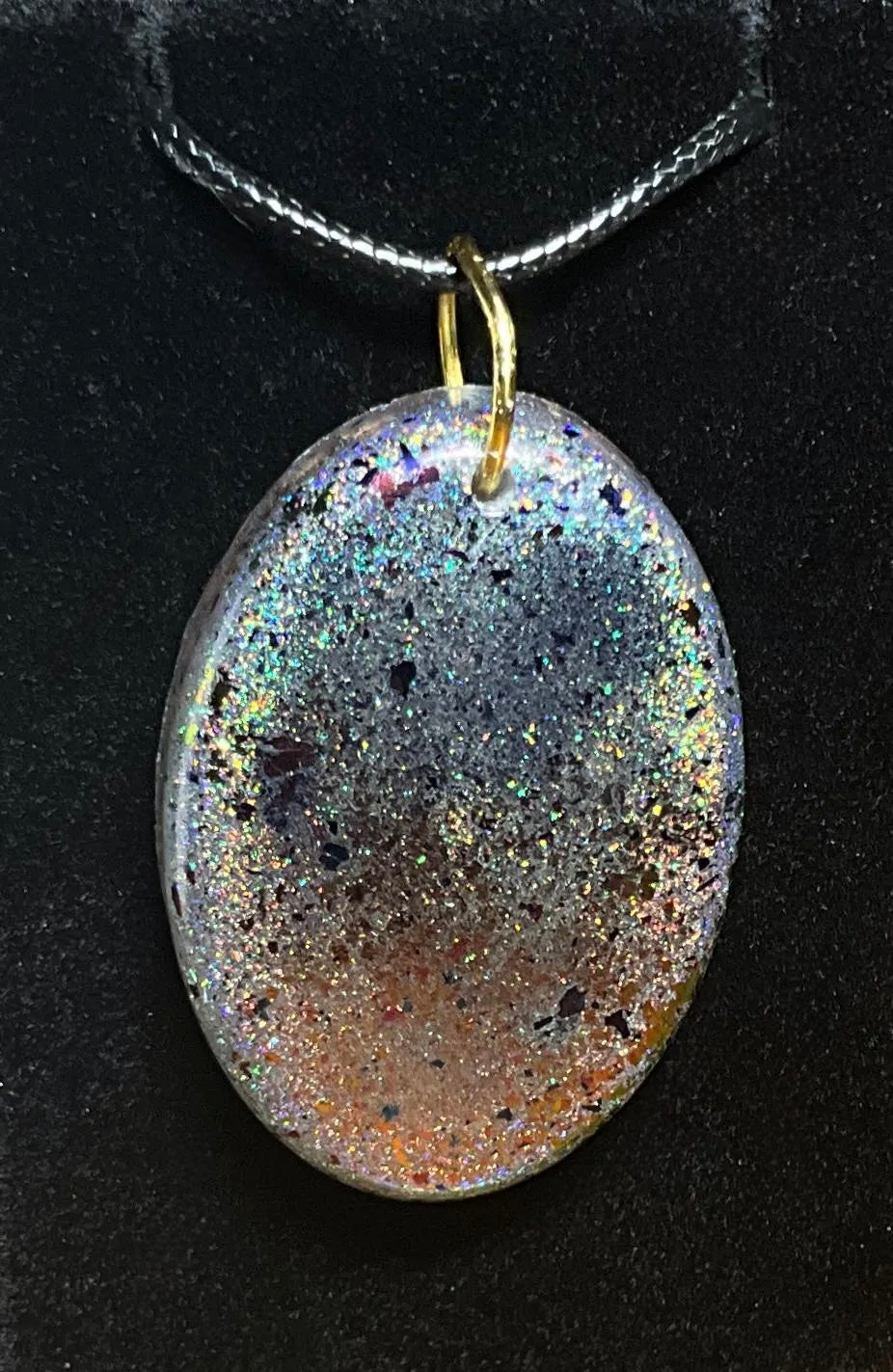 - Side 2: Flip the pendant to unveil a dazzling metallic surface that shifts and changes color with the light and angle – creating a mesmerizing, dynamic effect that keeps all eyes on you.