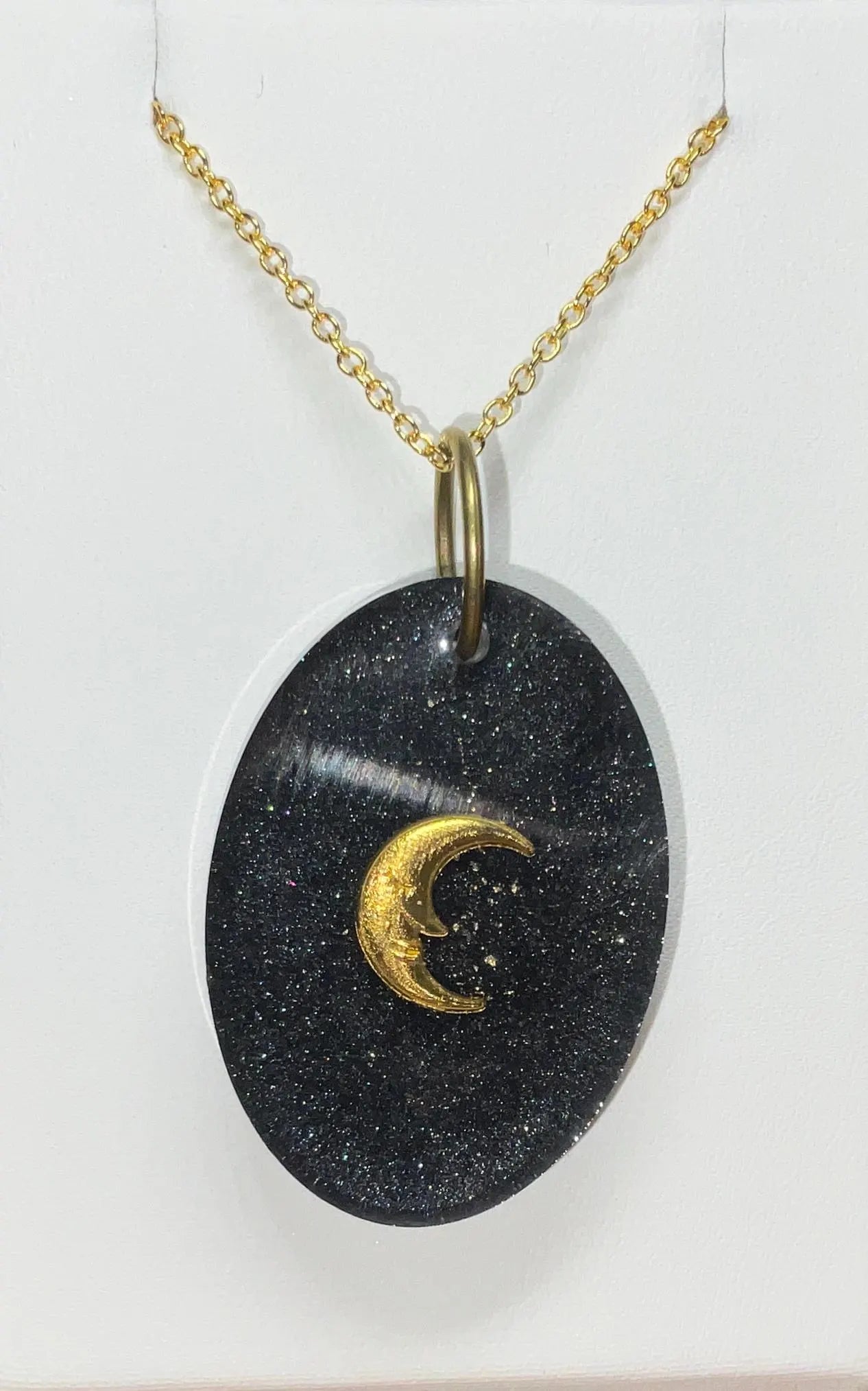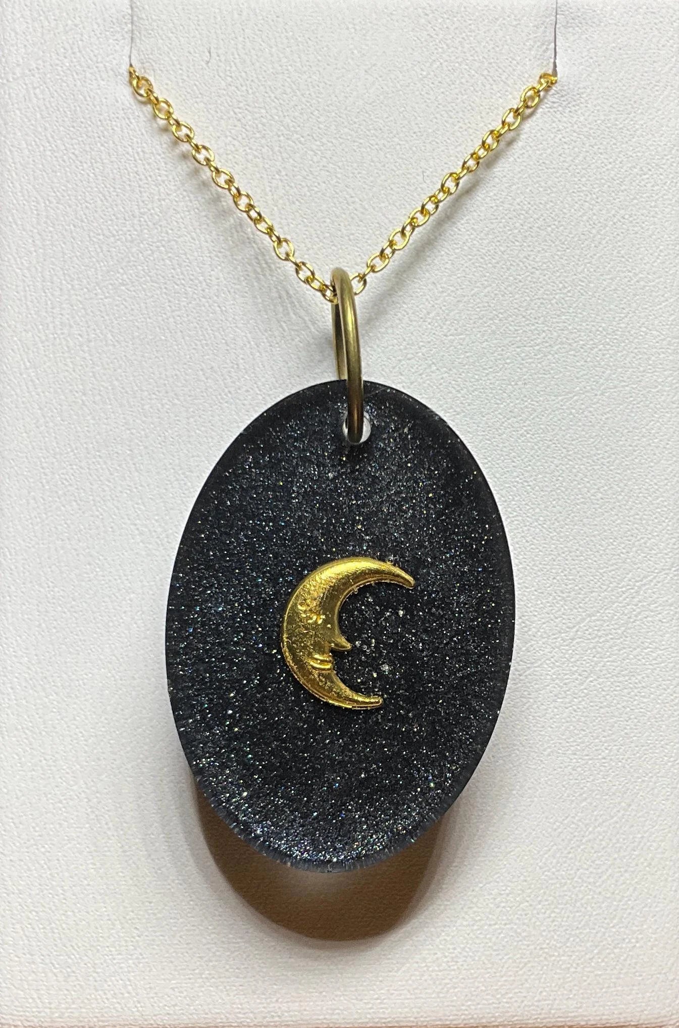 - Side 2: Flip the pendant to reveal a matching, glittering design enhanced with Color-Shift pigments that subtly shift and transform with changes in light and angle – a dynamic effect that mirrors the ever-changing phases of the moon.