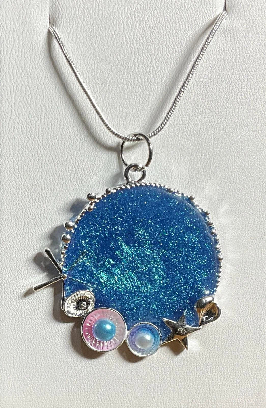 Let the enchanting allure of the ocean inspire your style with this breathtaking handmade necklace, delicately crafted with seashell and oyster accents. The pendant shimmers with a captivating color-shift effect, mirroring the ever-changing hues of the sea as it dances in the light. This dynamic piece evokes the mystery and beauty of the ocean, bringing a sense of wonder and elegance to your collection.
