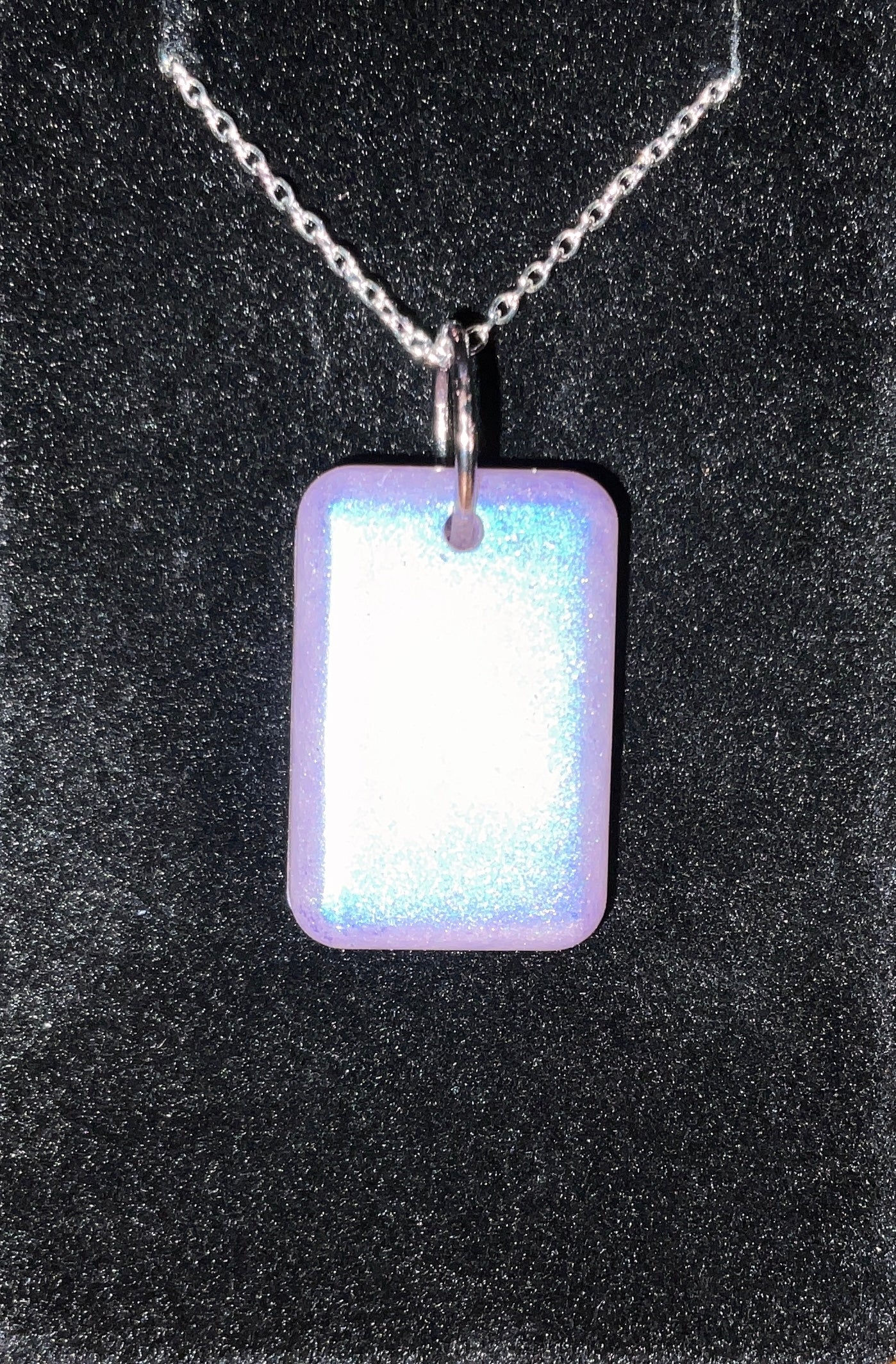 - Side 2: Flip the pendant to discover a captivating blend of light, iridescent hues that shift and shimmer with the light and angle, creating a magical, ever-changing effect.