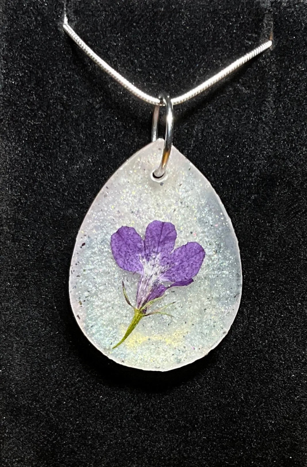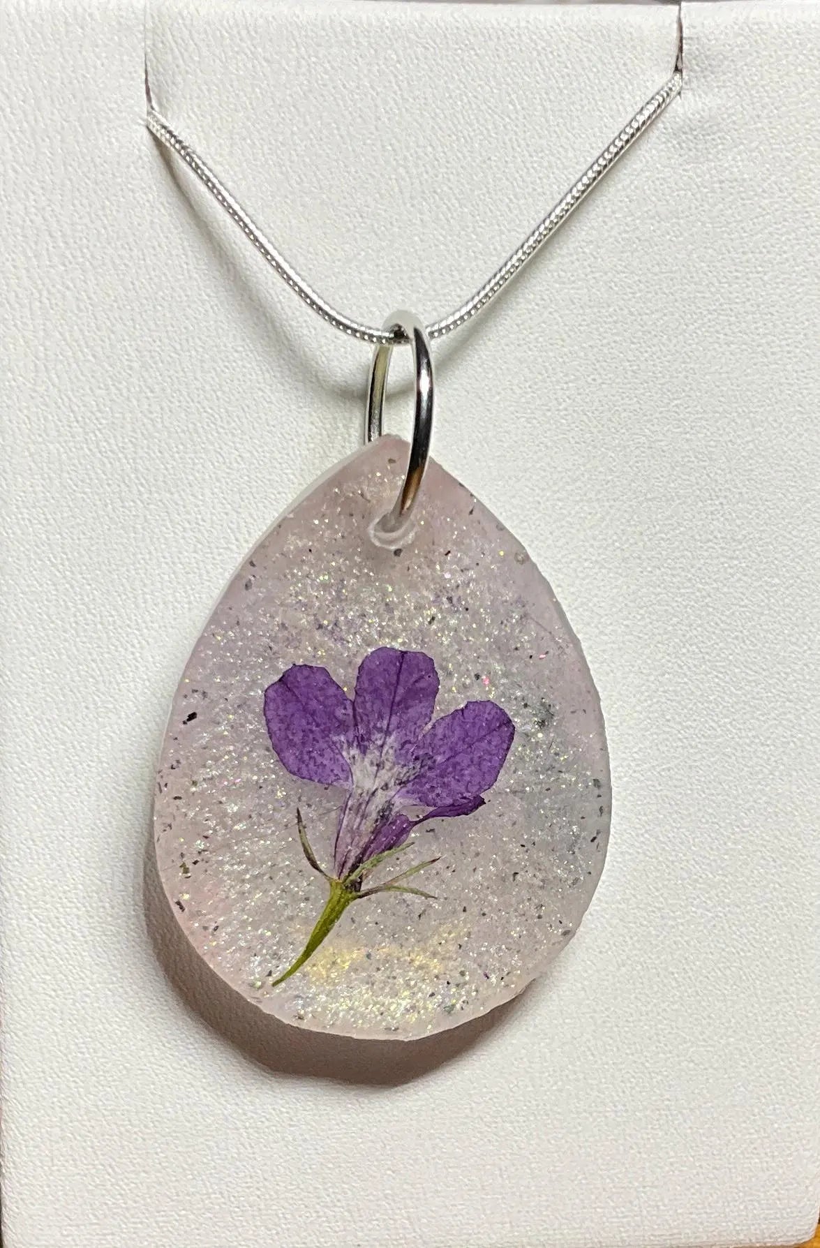Embrace the delicate beauty of nature with this stunning two-sided pendant necklace, designed to bring grace and versatility to your jewelry collection. On one side, a soft purple flower rests gently against a shimmering background, capturing the essence of floral elegance. Flip the pendant over to reveal a jewel-inspired design in a rich, metallic champagne hue – a striking yet subtle contrast that offers two beautiful looks in one piece.