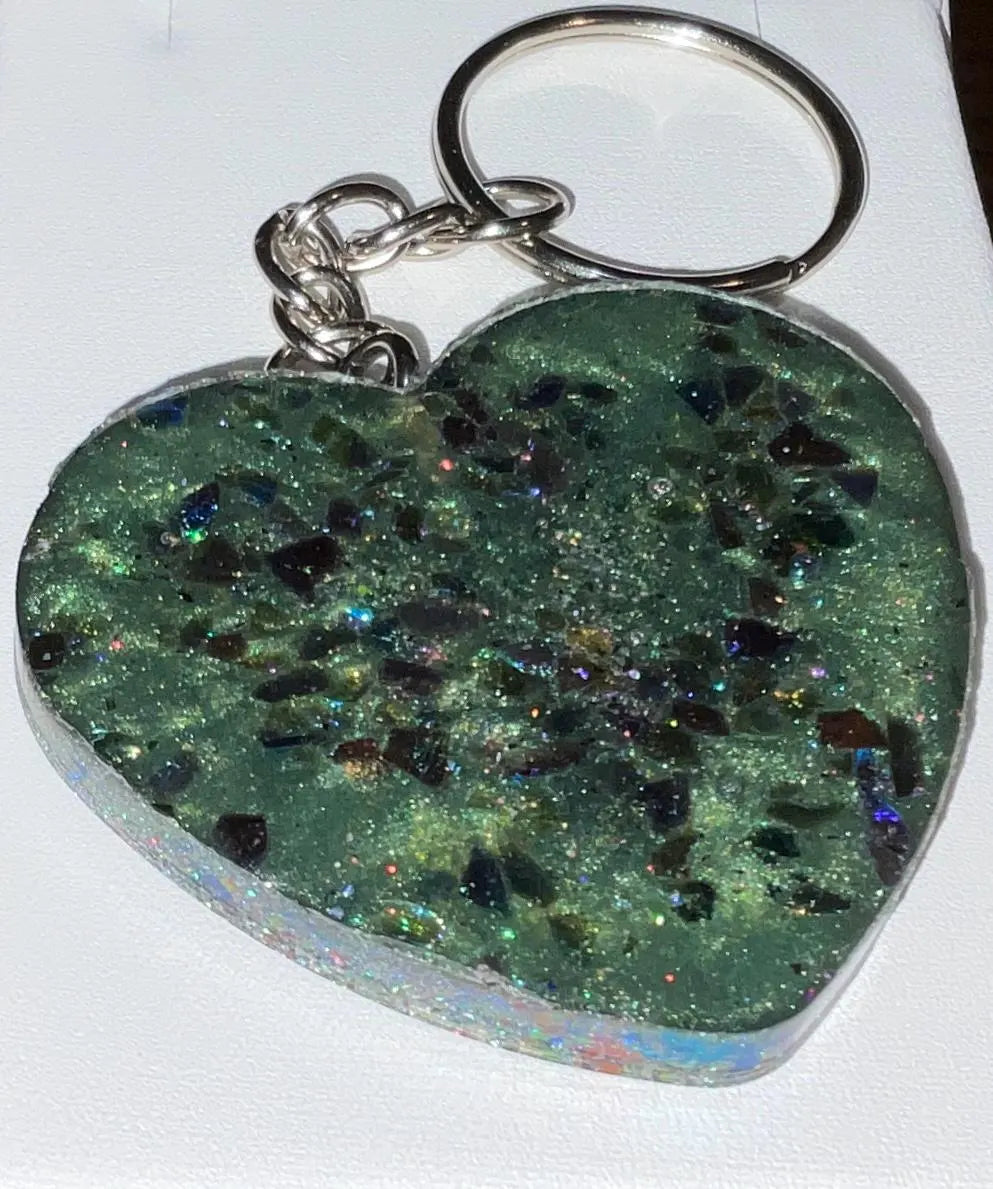 Celebrate the strength and dedication of nurses with this stunning heart-shaped RN keychain. This eye-catching piece features a dazzling front design, while the back showcases a rich green finish embedded with crushed glass, adding texture and a touch of brilliance. This combination symbolizes the resilience and beauty found in the heart of every healthcare professional.