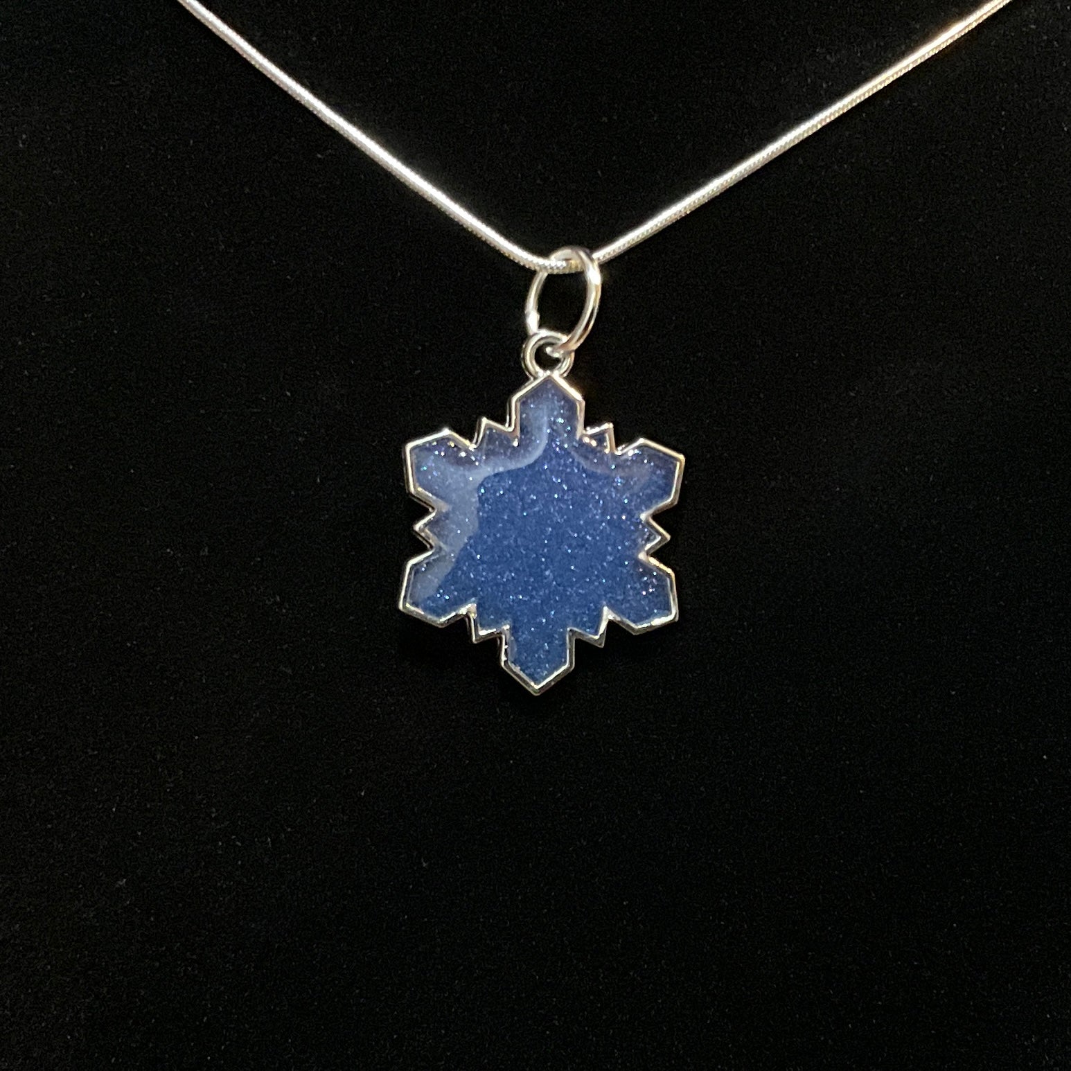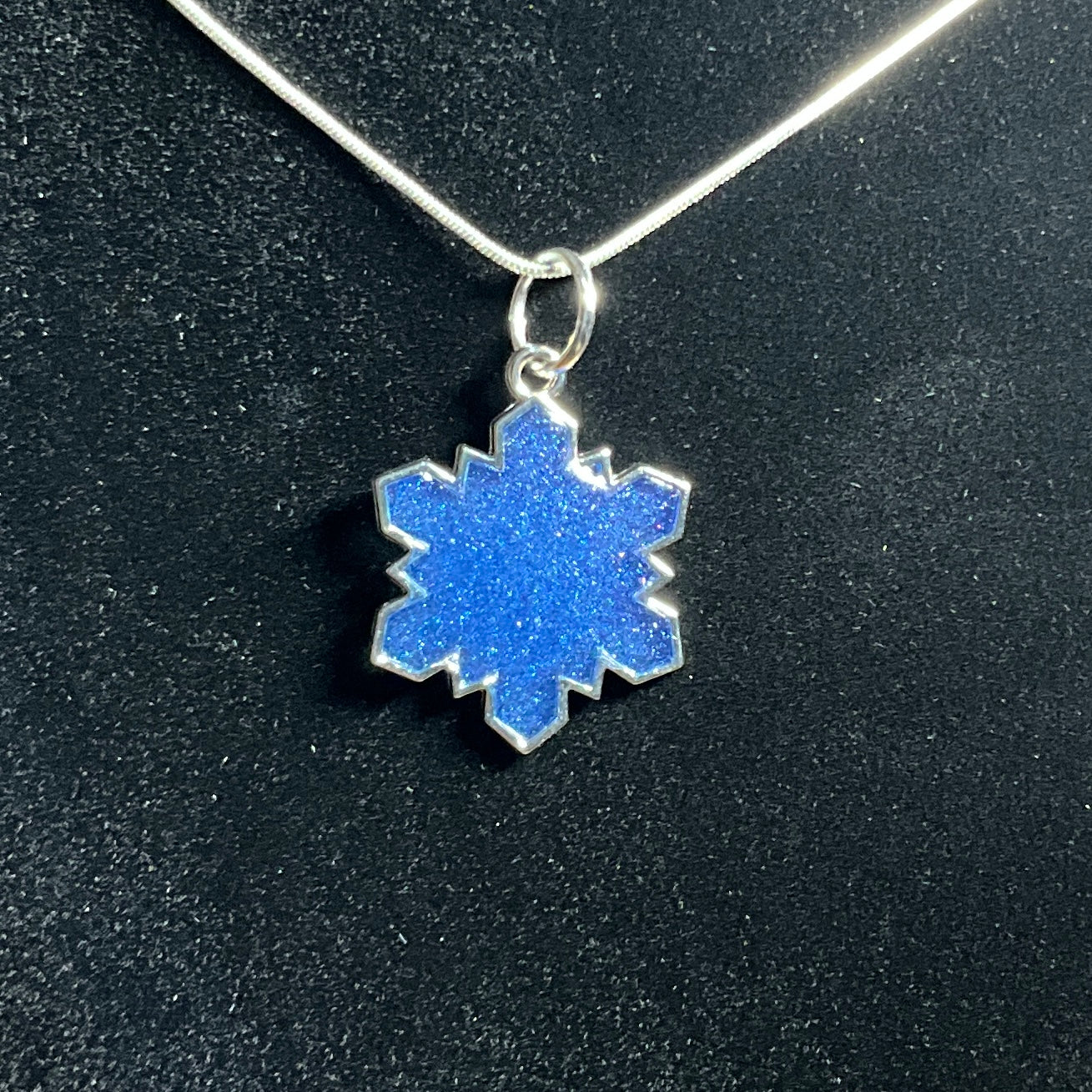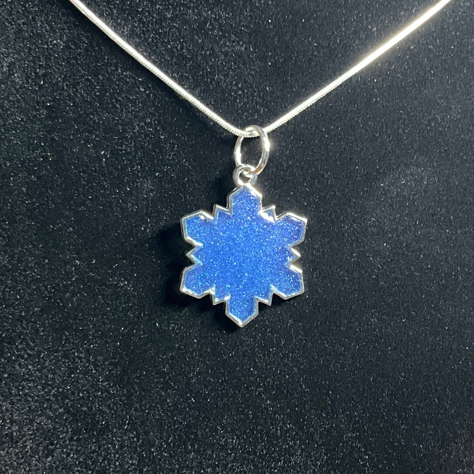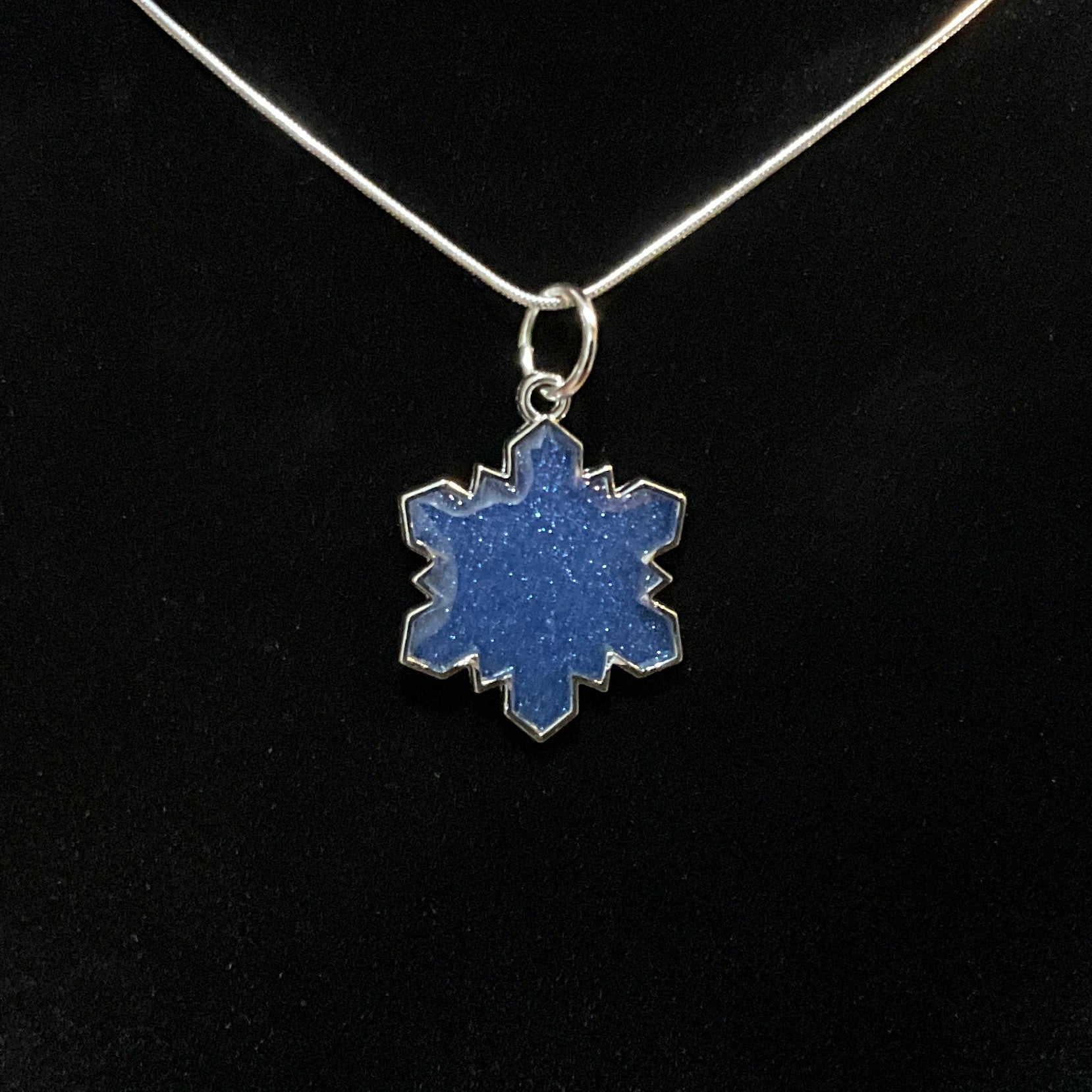 Capture the beauty of winter with this enchanting handcrafted shimmery blue snowflake necklace. The pendant sparkles with iridescent blue hues, reflecting light to create a frosty shimmer reminiscent of freshly fallen snow. Delicate yet bold, this snowflake design highlights the intricate beauty found in nature, making it a standout piece for any jewelry collection.