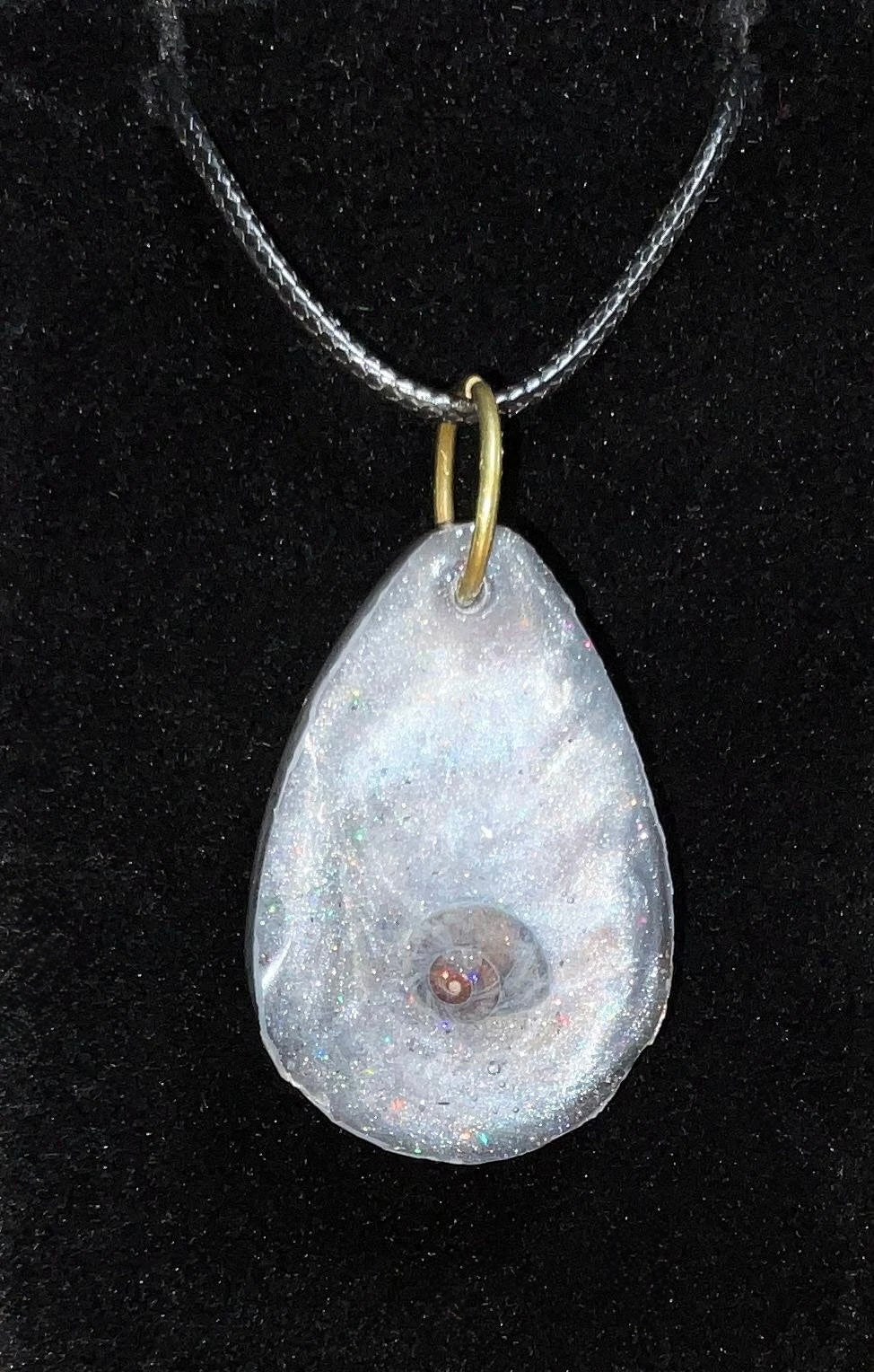 Embrace the beauty of nature and the cosmos with this stunning two-sided Spiral Shell Necklace. On one side, a delicate spiral shell is set against shimmering shades of white and silver, evoking the ethereal beauty of a spiral nebula swirling in the vastness of space. Flip the pendant over to reveal captivating metallic colors that shift and change depending on the light and angle, adding a dynamic, otherworldly quality to your accessory collection.