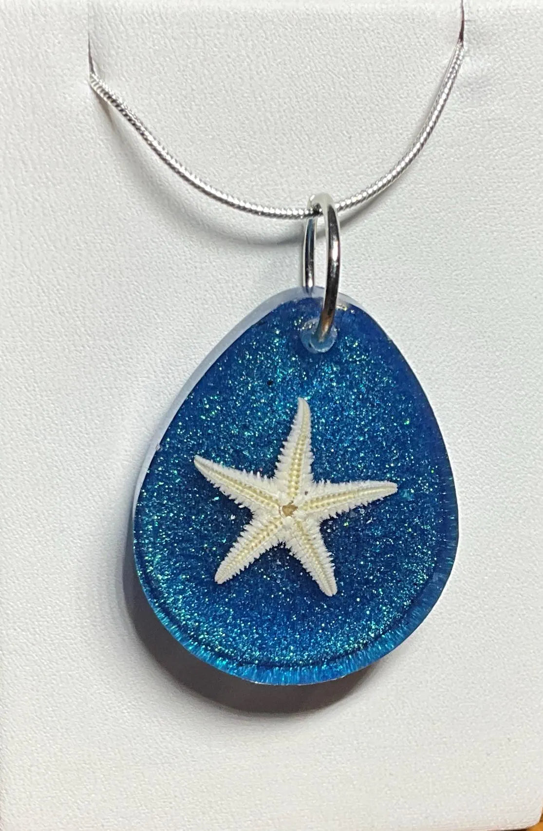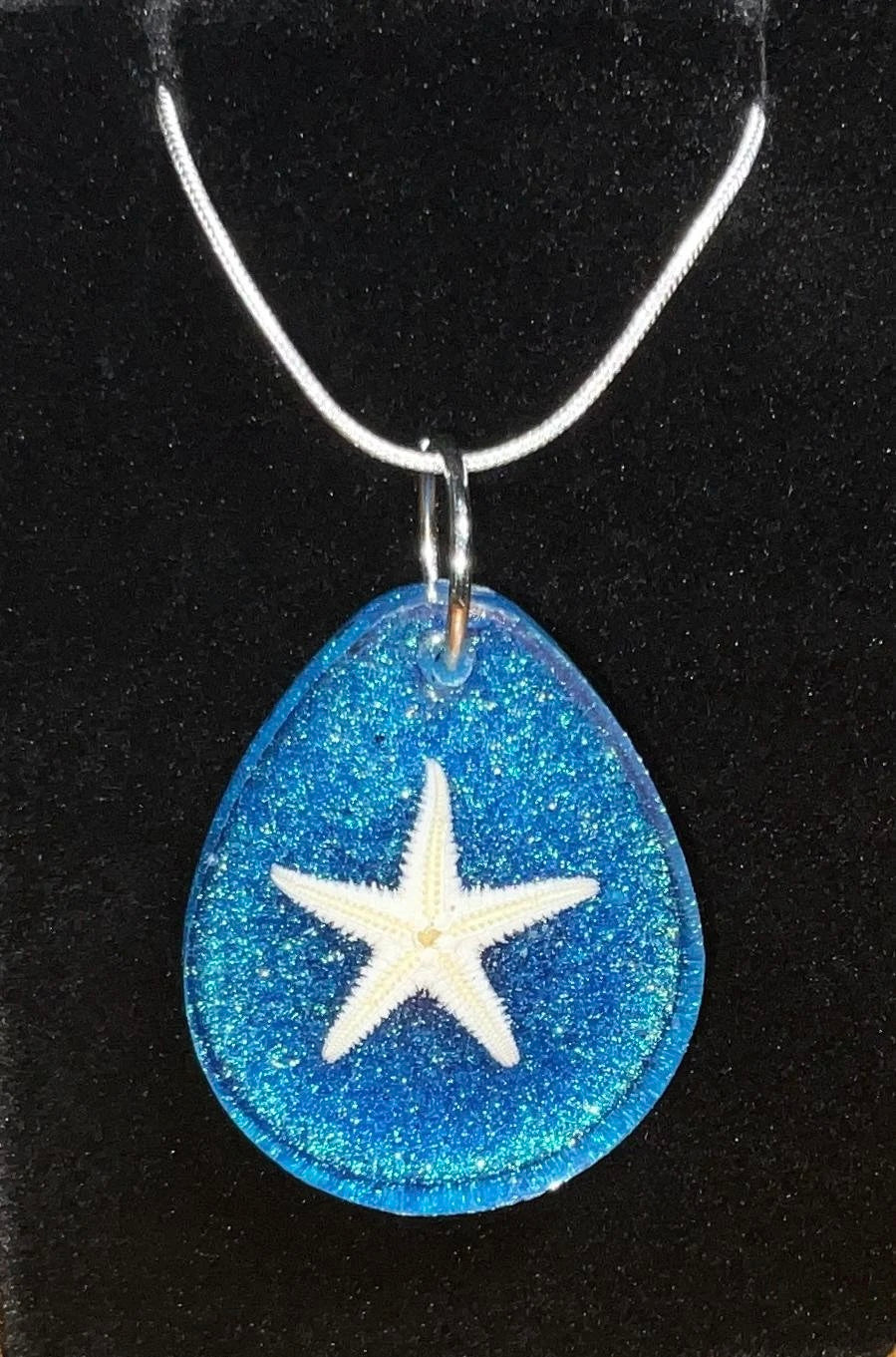Embrace the serene beauty of the ocean with this stunning two-sided Starfish Blue Necklace. One side of the pendant showcases a real starfish set against a shimmering blue background, evoking the tranquil essence of the sea. Flip it over to reveal mesmerizing blue hues that shift and change depending on the light and angle, adding a dynamic, ever-changing touch to this exquisite piece.
