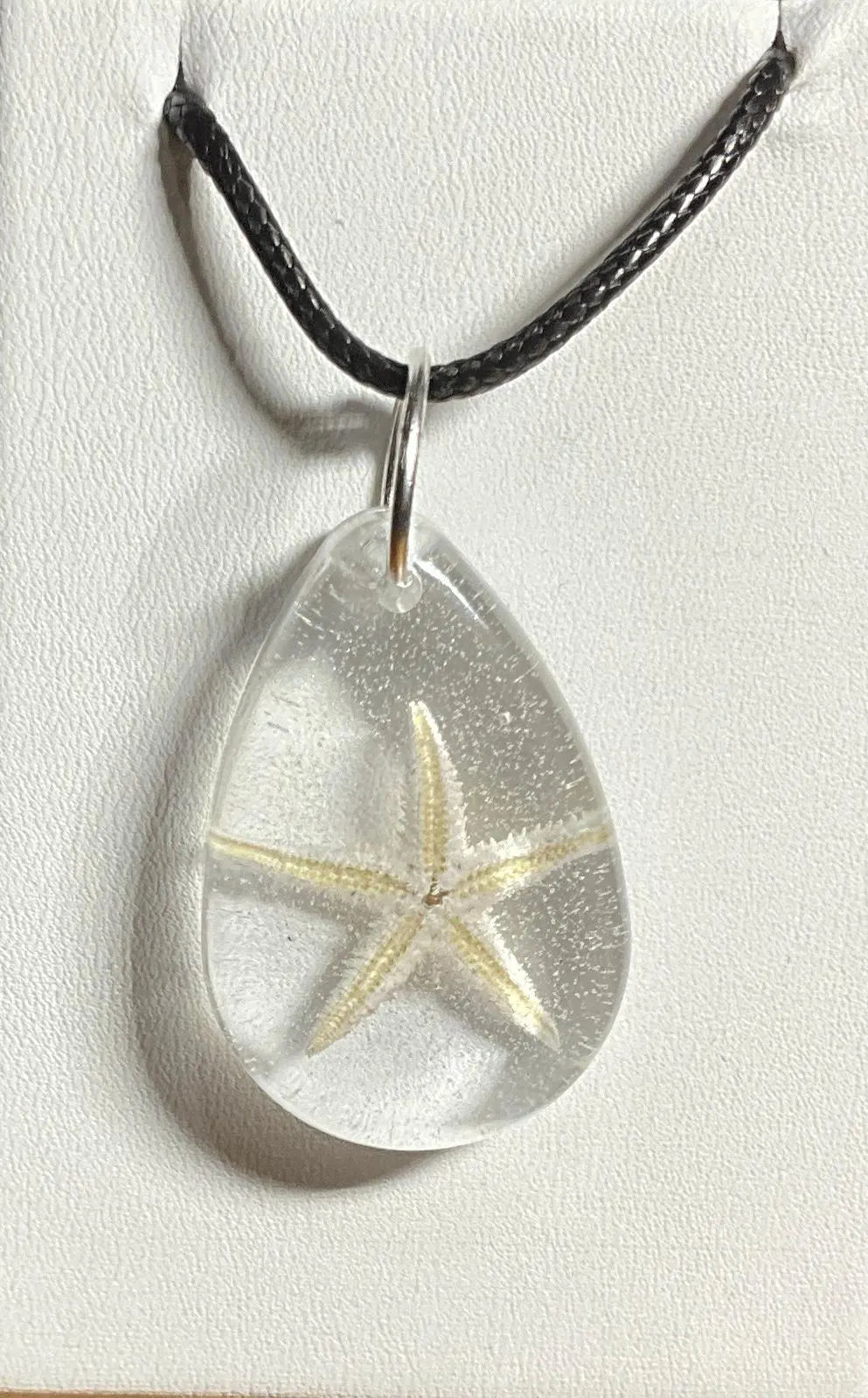 Capture the essence of the sea with this stunning handmade starfish necklace. The pendant features a real starfish encased in clear resin, with delicate bubbles suspended inside to evoke the playful movement of water. The natural beauty of the starfish, paired with the shimmering bubbles, creates a unique and captivating piece that adds beachy charm to any outfit. Whether you're dreaming of the ocean or simply adore sea-inspired accessories, this necklace will bring a refreshing, coastal touch to your look.