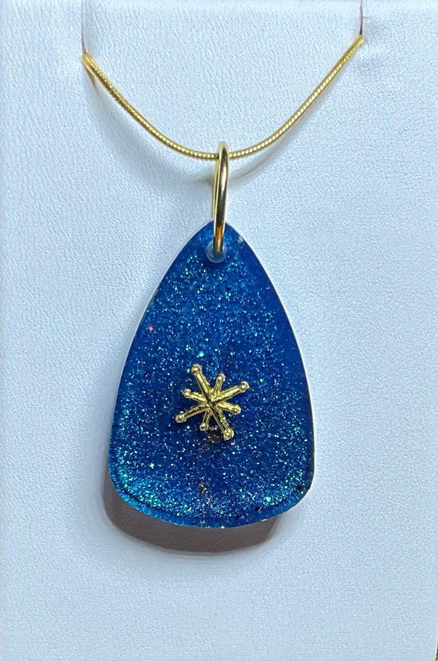 Bring the serene magic of winter nights into your style with the Starlit Snow Necklace, a stunning two-sided pendant that captures the frosty charm of the season. On one side, a gold snowflake delicately rests against a shimmering blue backdrop, evoking the sparkling beauty of freshly fallen snow under a starry sky. Flip it over to reveal a simpler, yet equally enchanting design—an all-blue sparkly surface, reminiscent of a peaceful, icy landscape at dawn.