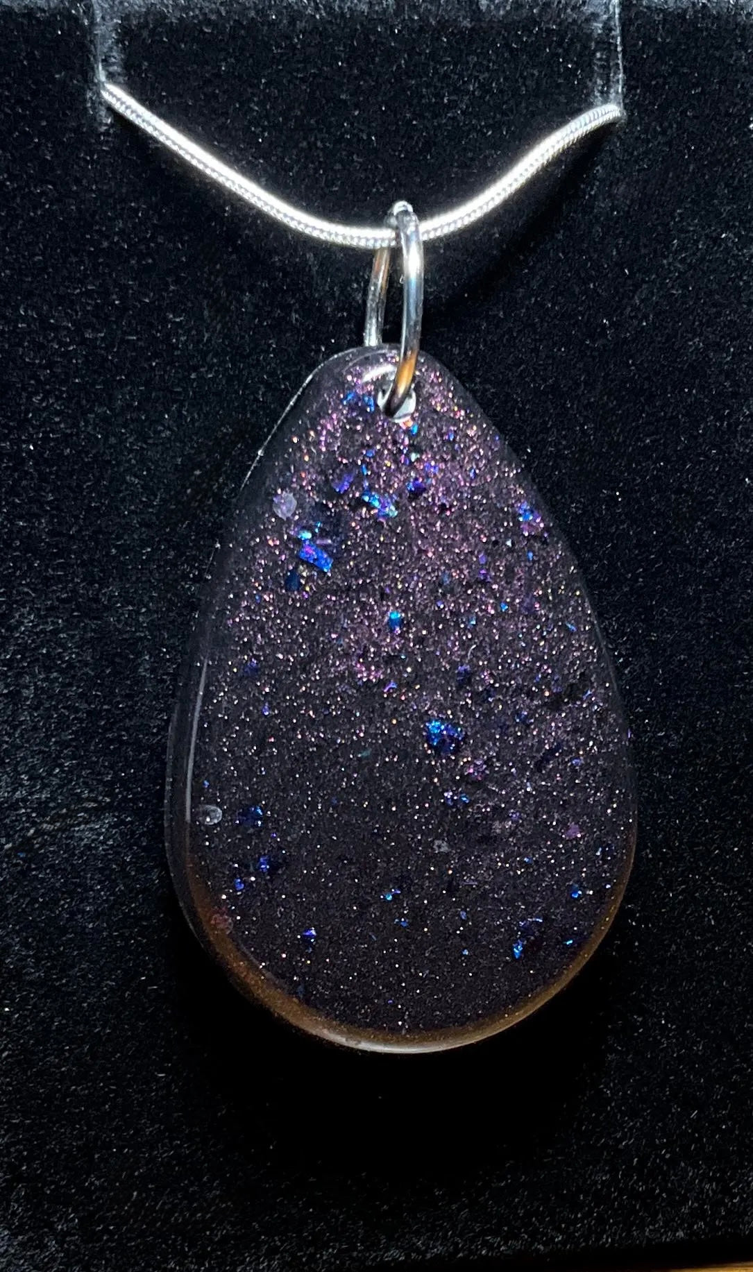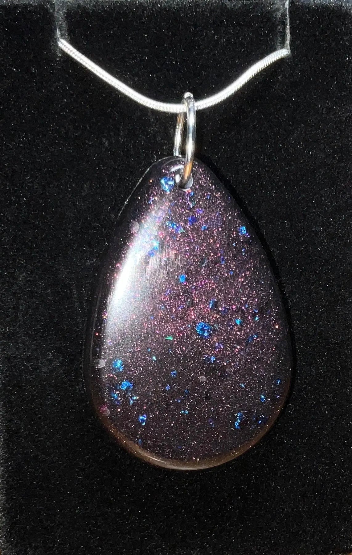 Whether you choose the floral side for a natural, delicate vibe or the shimmering purple for a bold, sophisticated feel, this necklace complements any style with ease. The two-sided design makes it perfect for any occasion, from casual outings to special events.